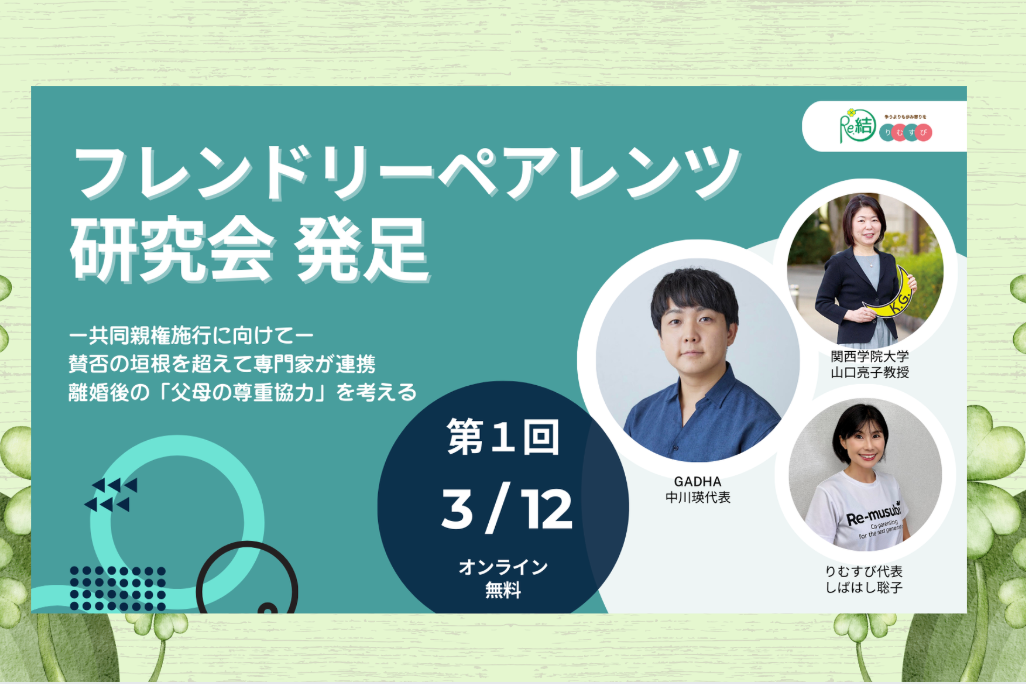 共同親権賛否の垣根を超えて「フレンドリーペアレンツ研究会」発足| 第1回「DV更生支援の視点から考える父...
