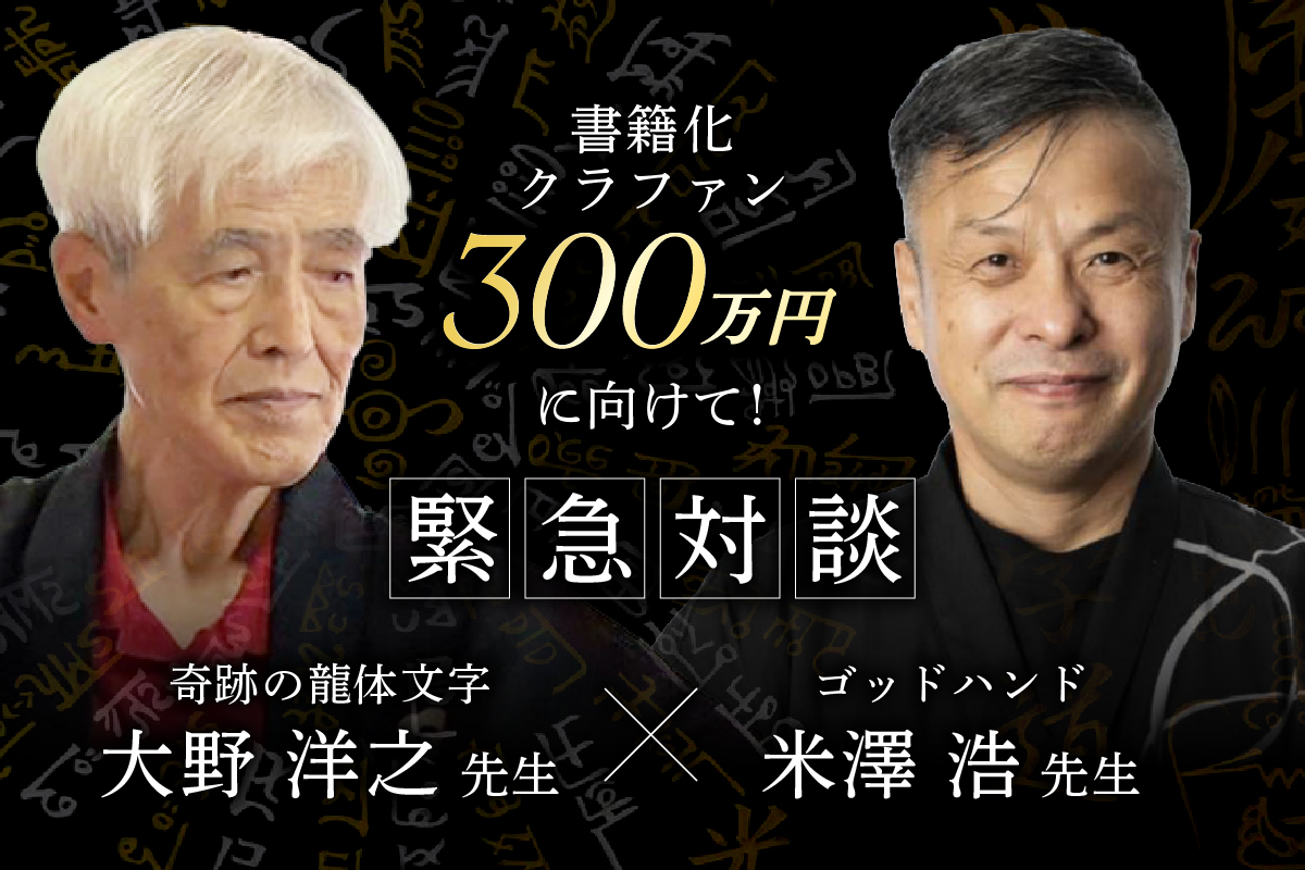 For good様にて3月31日まで実施いたしました✨大野洋之 奇跡の龍体文字 書籍化クラウドファンディング✨ですが、目標の100万円を92人の方にご支援いただき、✨1,135,000円✨ものご寄付をいただき無事終了...
