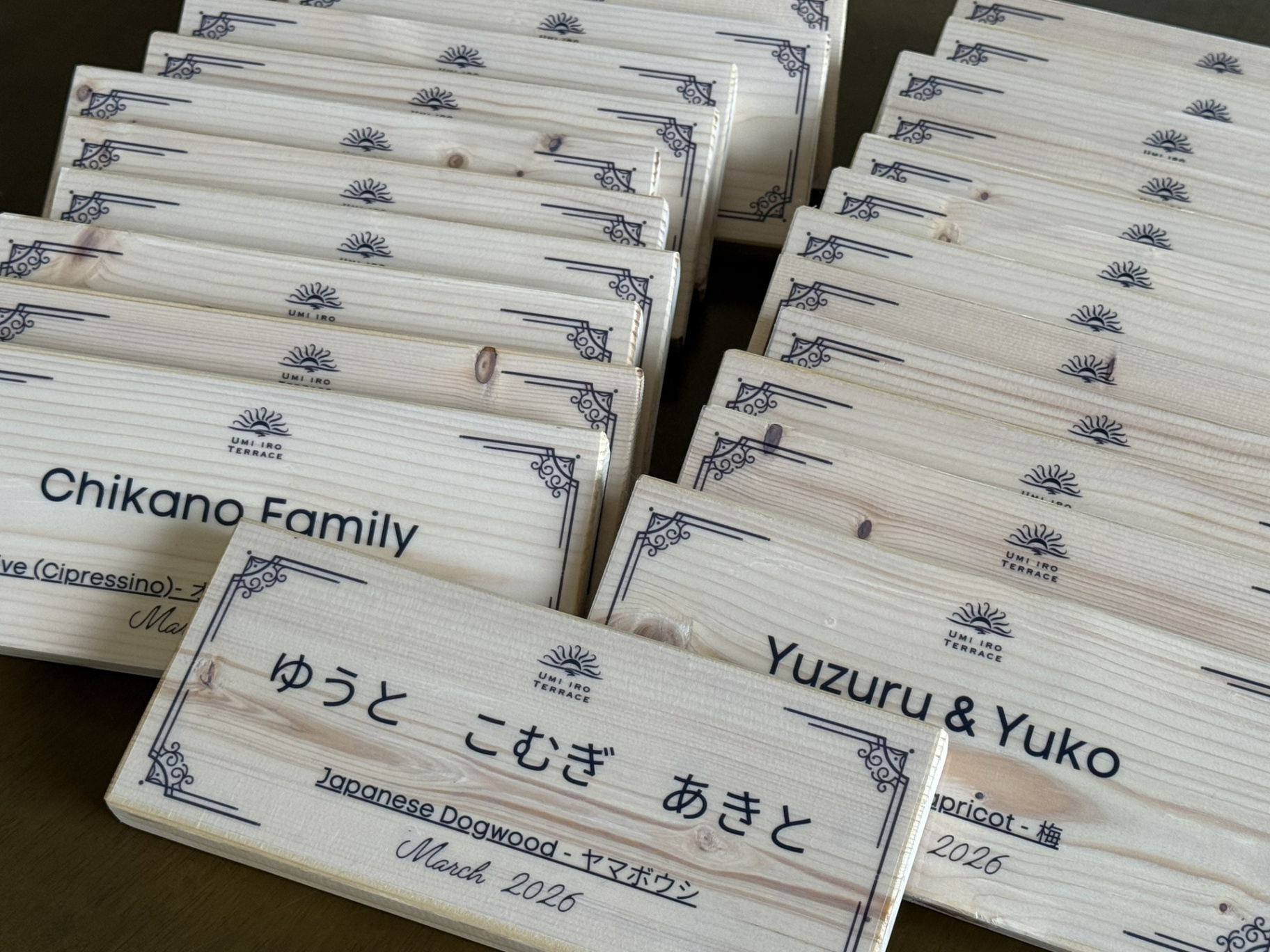 また、お名前を記したネームプレートも、市販品ではなく、スタッフみんなでひとつひとつ心を込めて手作りいたしました。