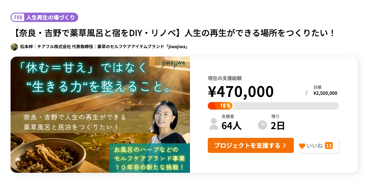 【奈良・吉野で薬草風呂と宿をDIY・リノベ】人生の再生ができる場所をつくりたい!