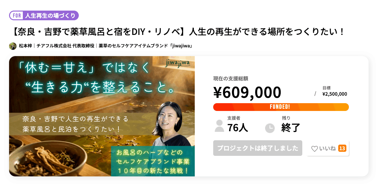 【奈良・吉野で薬草風呂と宿をDIY・リノベ】人生の再生ができる場所をつくりたい!