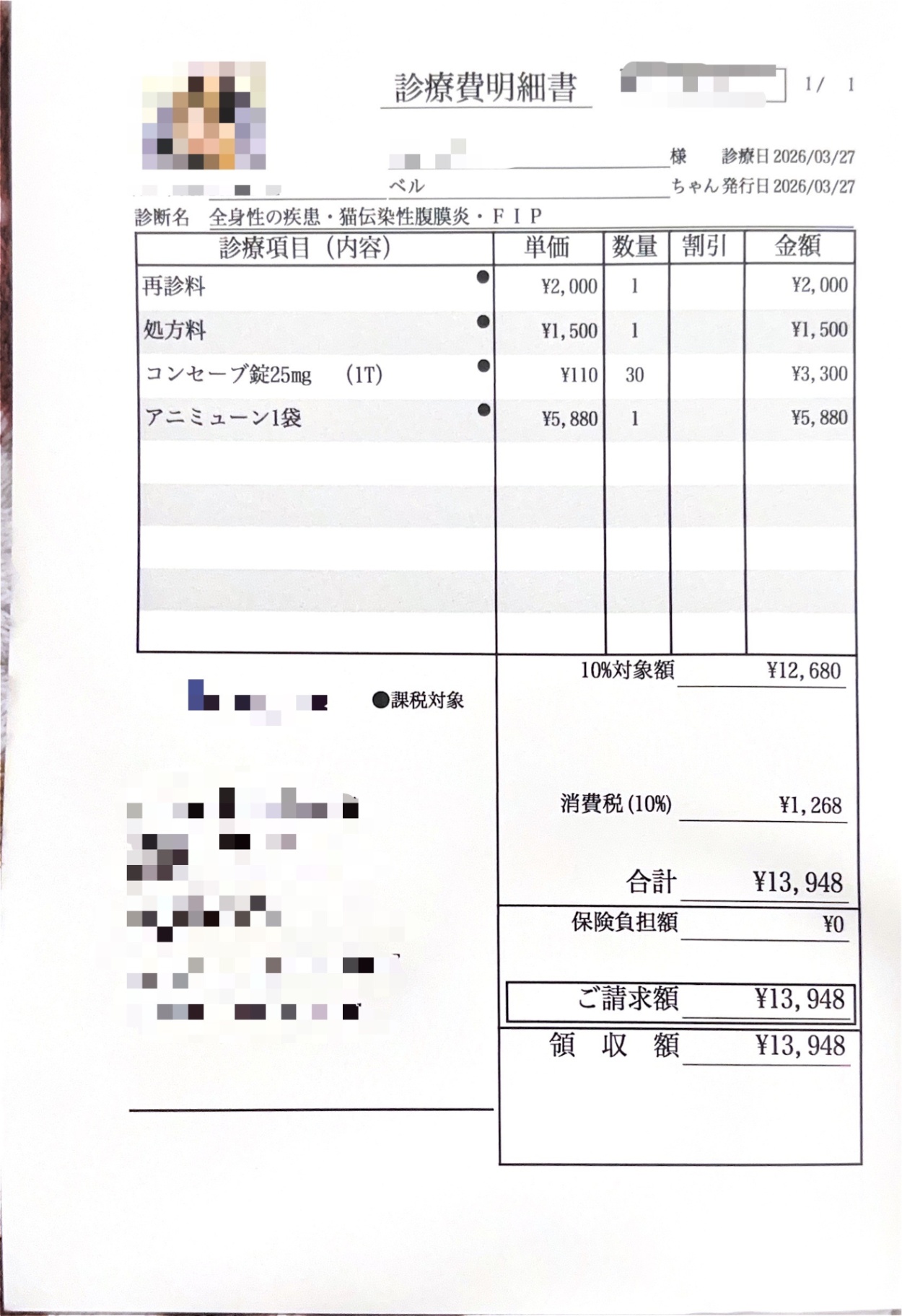 本日、抗てんかん薬の処方と、検査結果の詳細の説明を受けるため動物病院へ行ってきました。