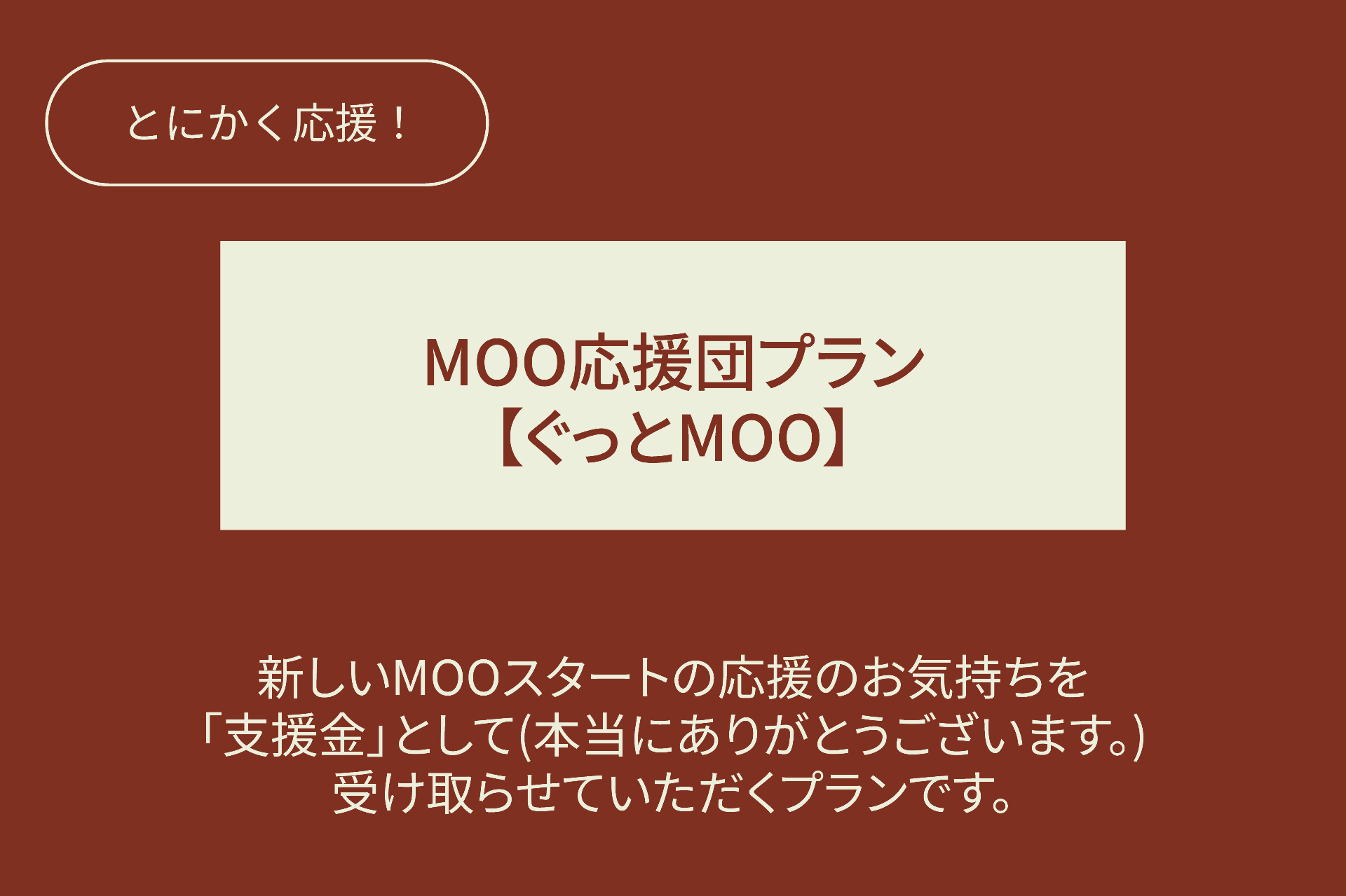 新しい「MOO」スタートの応援のお気持ちを「支援金」として(本当にありがとうございます。)受け取らせていただくプランです。