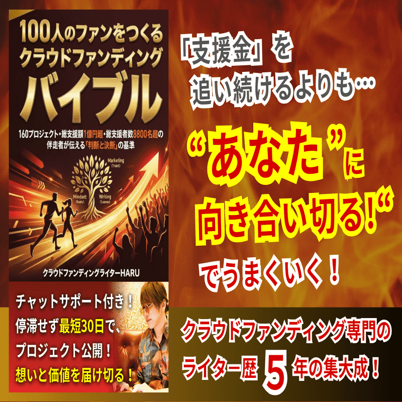挑戦者に『100人のファンをつくるクラウドファンディングバイブル』を届けたい!