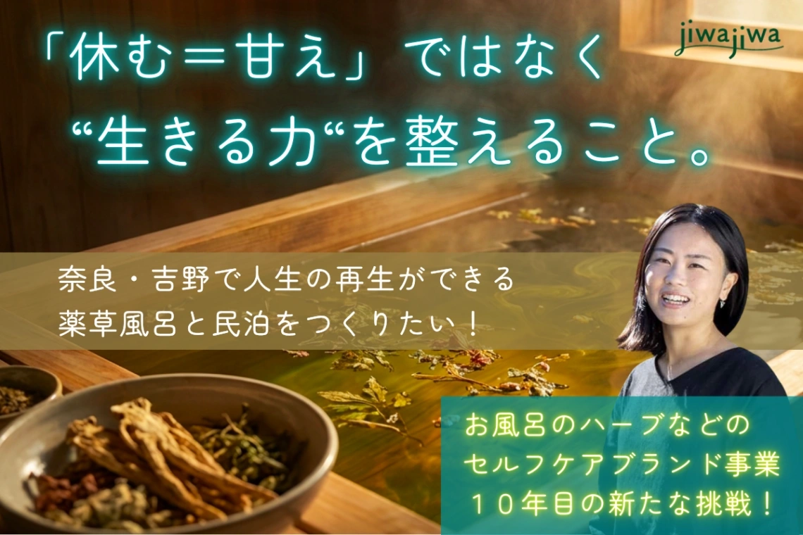 セルフケアブランド「jiwajiwa」では、お風呂のハーブなどが人気。百貨店やホテルでも取り扱われていて、社会のリズムに疲れている方に寄り添う素敵な考え方を持っている方です。
