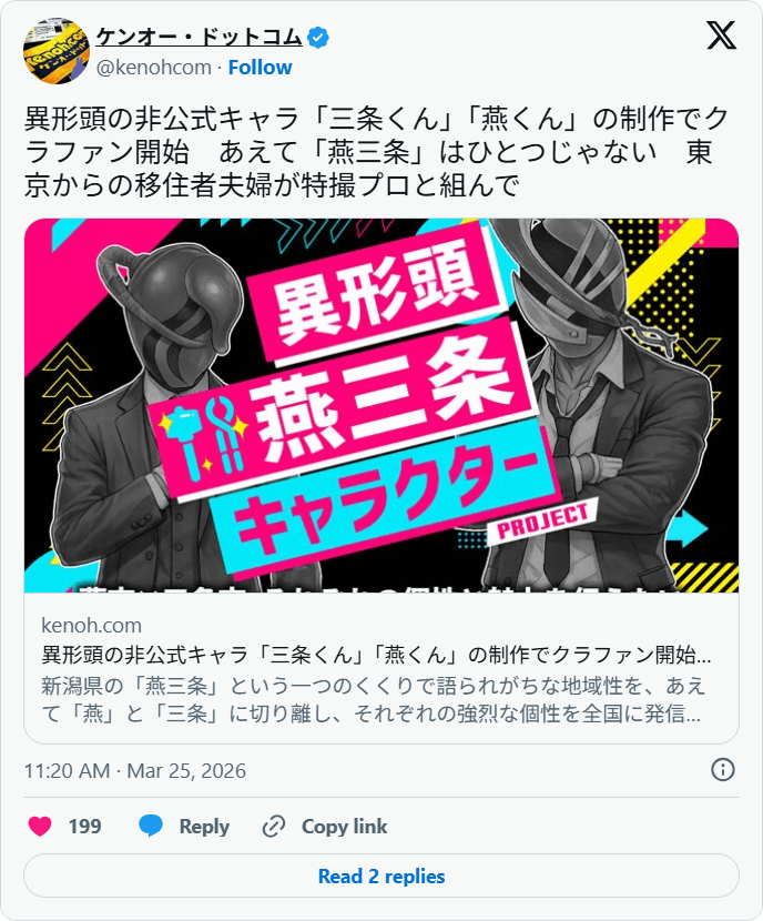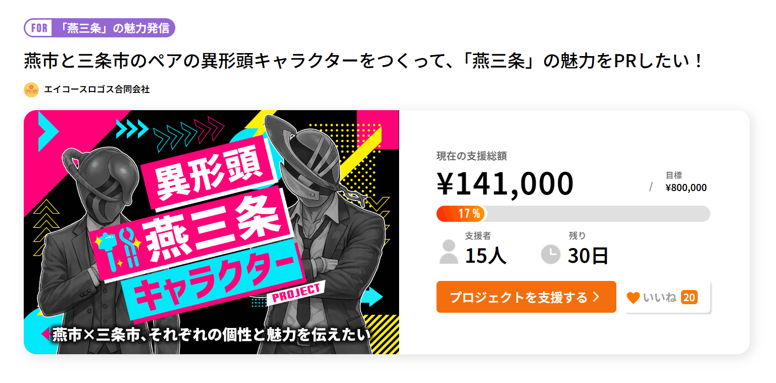 燕市と三条市のペアの異形頭キャラクターをつくって、「燕三条」の魅力をPRしたい!