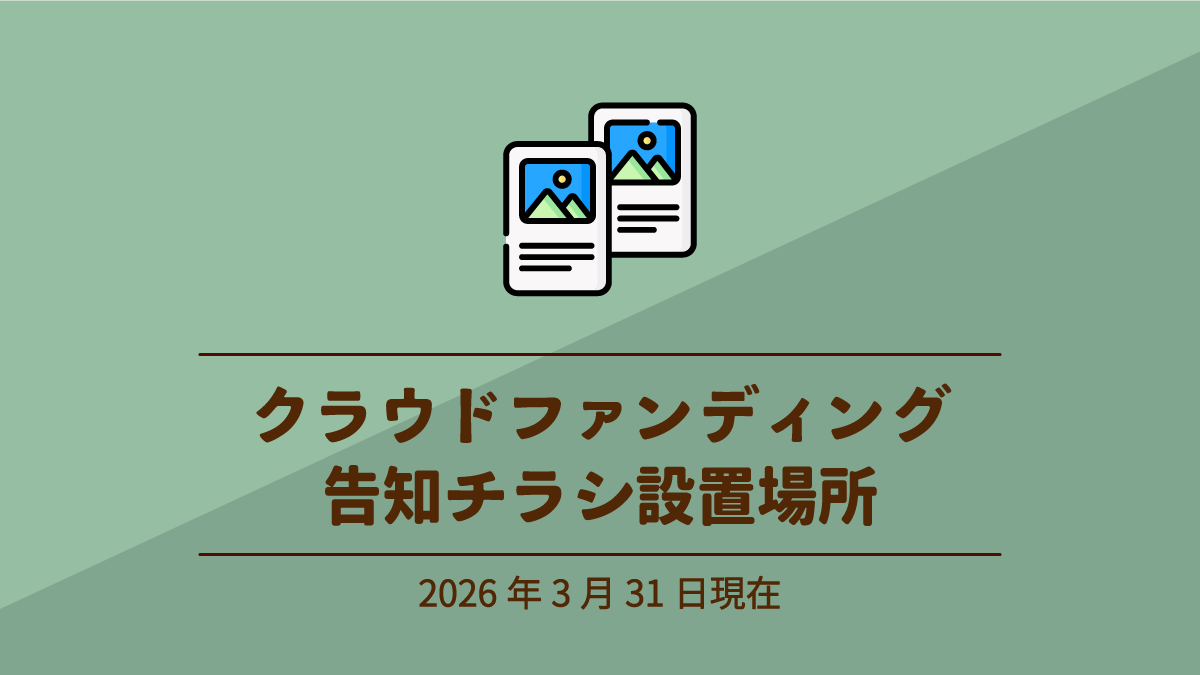 現在、クラウドファンディングのチラシ設置にご協力をいただいている施設は、下記の通りです(3月31日現在/設置依頼順に掲載)。
