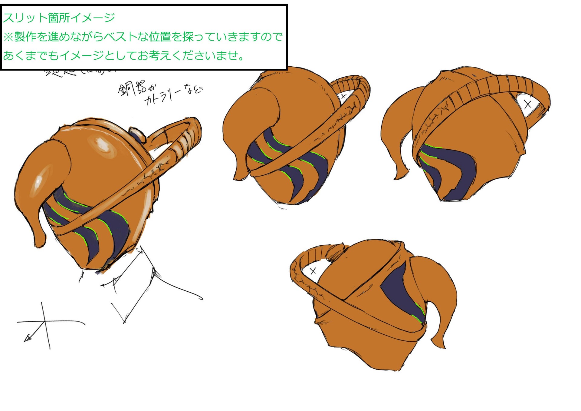 制作にあたり、今後このマスクをさまざまな場面で実際に使用していくことを踏まえ、「スリット(のぞき穴)」の仕様についてご質問をいただきました。
