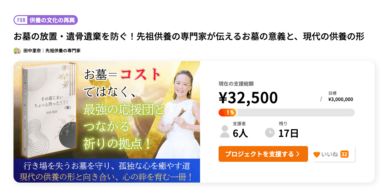 【クラウドファンディング11日経過】お墓を「コスト」から「心の平穏」へ。供養文化の形骸化を解決し、日本人としての誇りを取り戻す!
