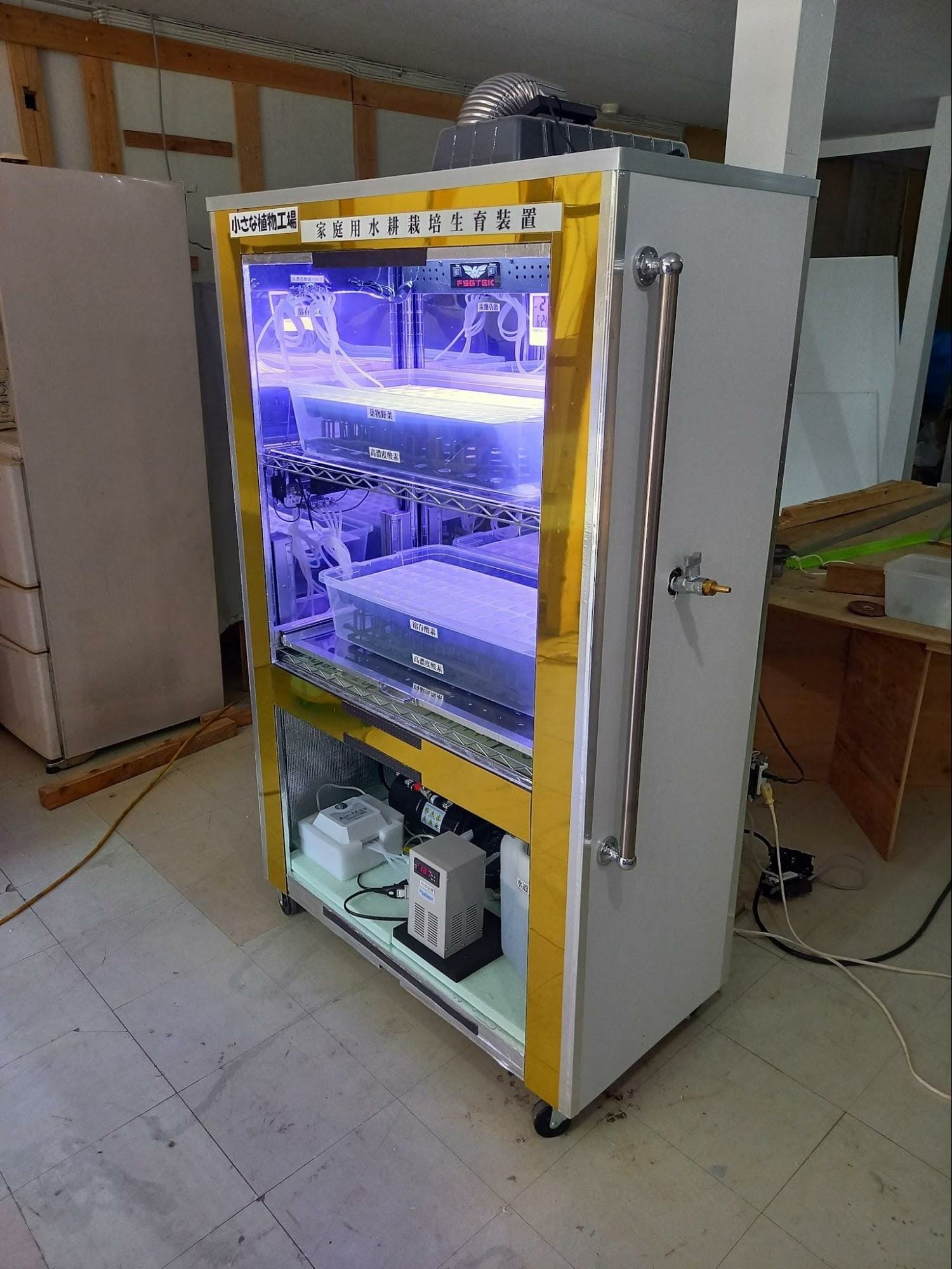 水事態を常に活性化させている為、庫内を循環供給する事で、水の交換手間、養液の投入を極力抑えた装置となります。